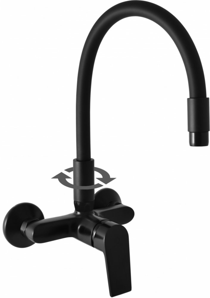 Vodovodní baterie dřezová nástěnná s flexibilním otočným ramínkem.