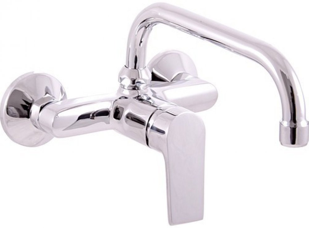 Vodovodní baterie dřezová/umyvadlová nástěnná s kulatým horním ramínkem 200 mm.