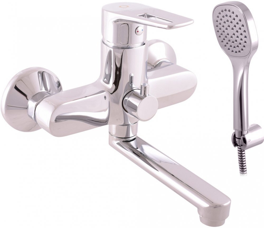 Vodovodní baterie vanová nástěnná s plochým otočným ramínkem.