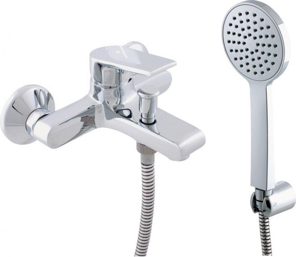 Vodovodní baterie vanová nástěnná se sprchou a pevným držákem.