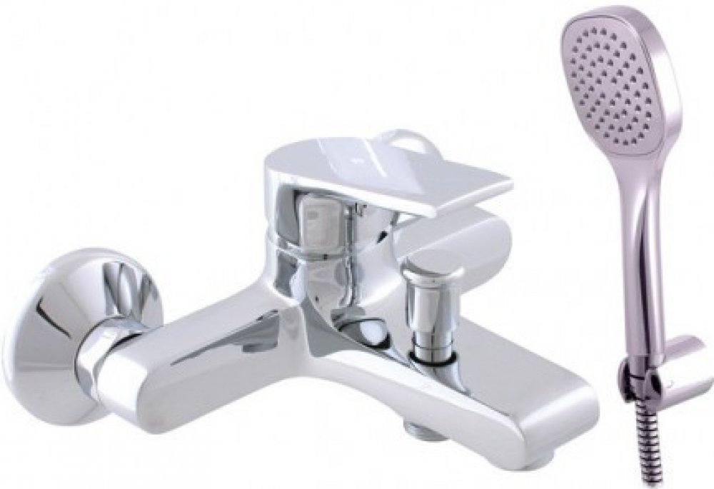 Vodovodní baterie vanová nástěnná se sprchou a pevným držákem.