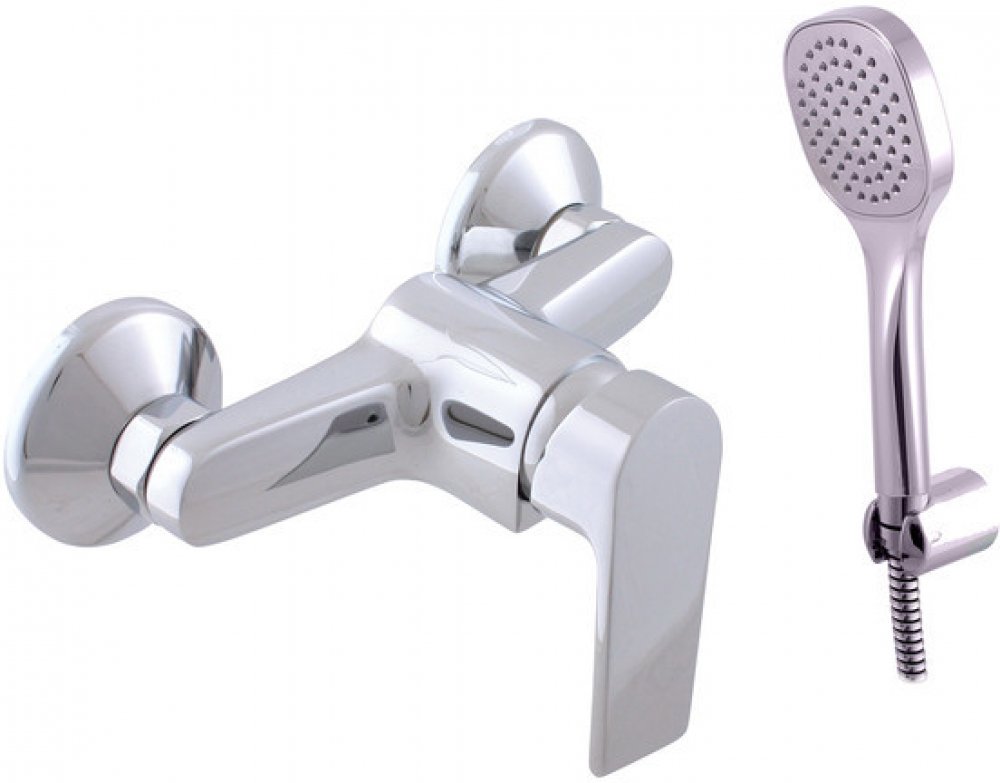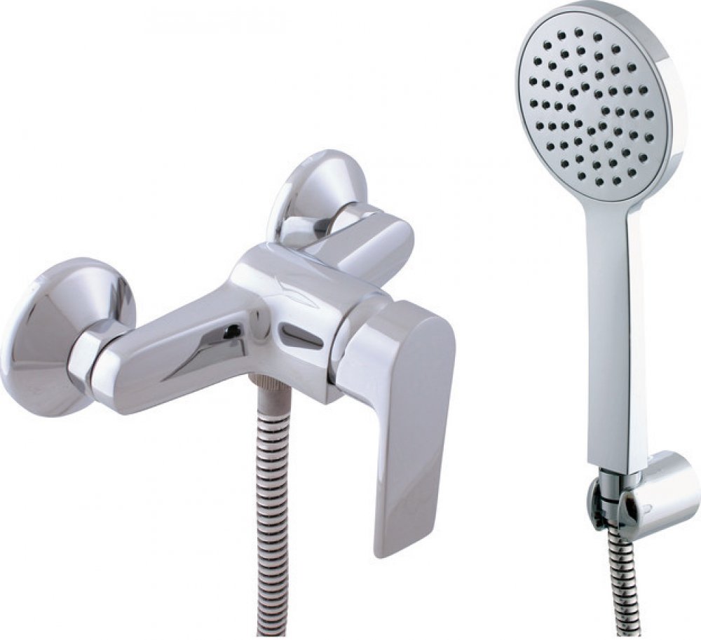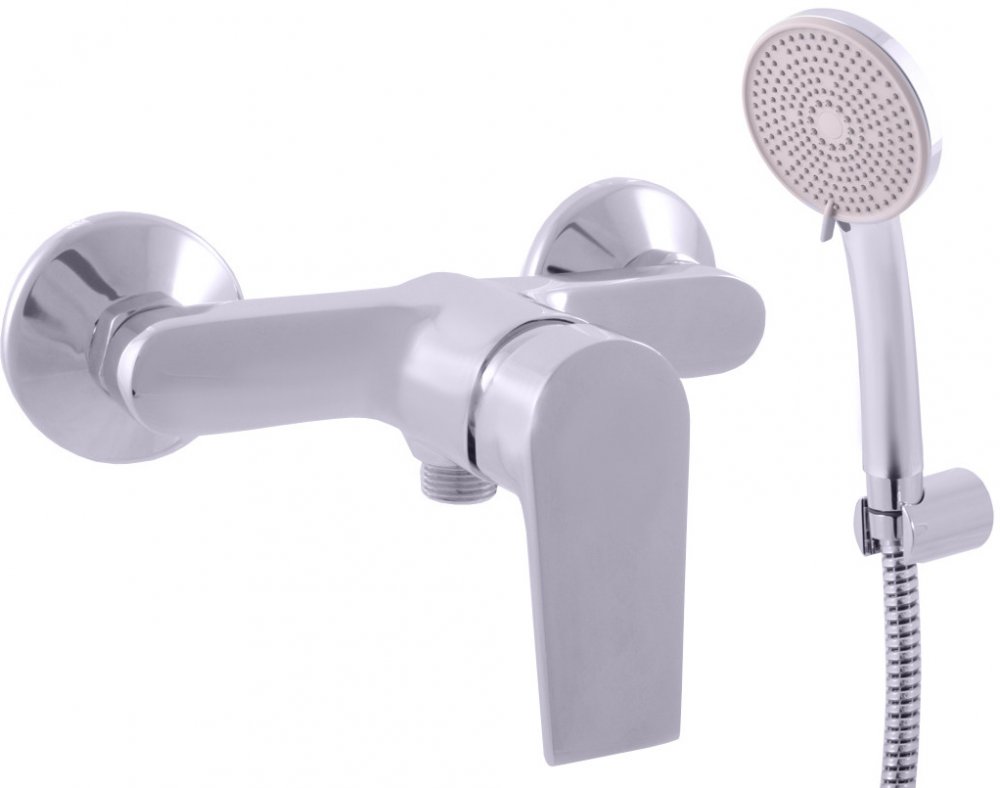 Vodovodní baterie sprchová nástěnná se sprchou a pevným držákem.