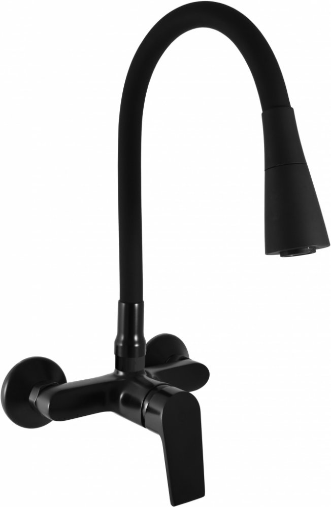 Vodovodní baterie dřezová nástěnná s flexibilním otočným ramínkem se sprchou.