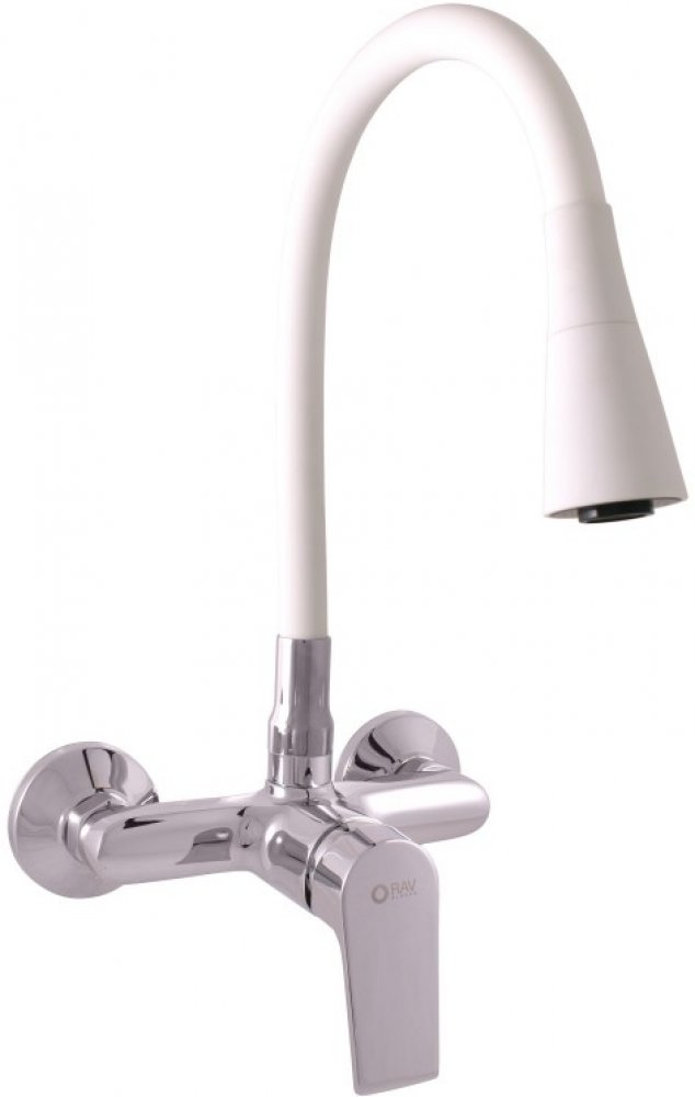 RAV Slezák nástěnné dřezové kuchyňské bílé pákové 150 mm mosazné