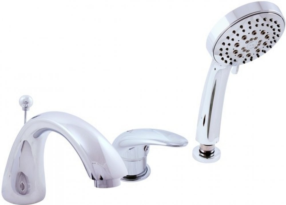 Vodovodní baterie vanová stojánková tříotvorová s přepínačem ve výtoku, samonavíjecí sprchou a 2m hadicí.