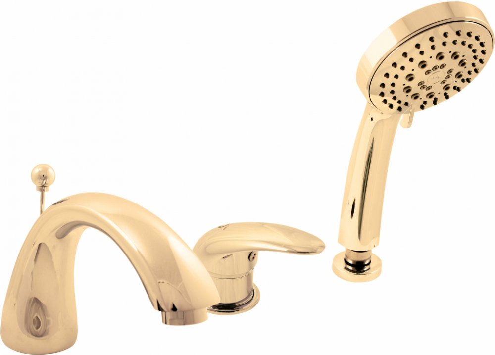 Vodovodní baterie vanová stojánková tříotvorová s přepínačem ve výtoku, samonavíjecí sprchou a 2m hadicí.