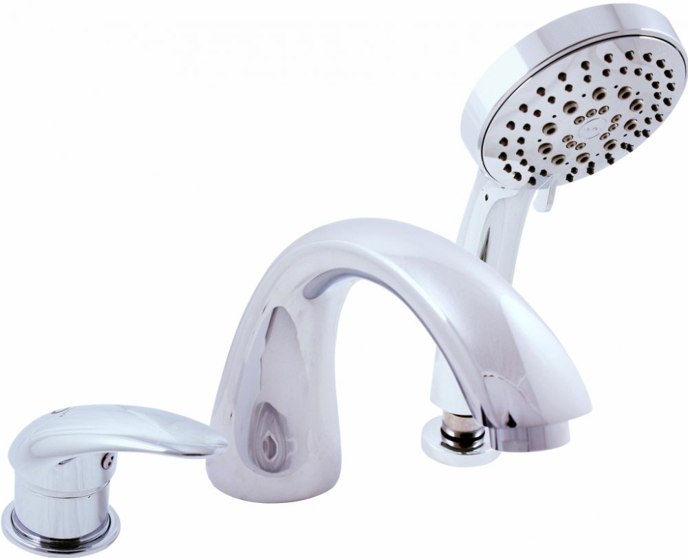 Vodovodní baterie vanová stojánková tříotvorová s přepínačem v mixu, samonavíjecí sprchou a 2m hadicí.