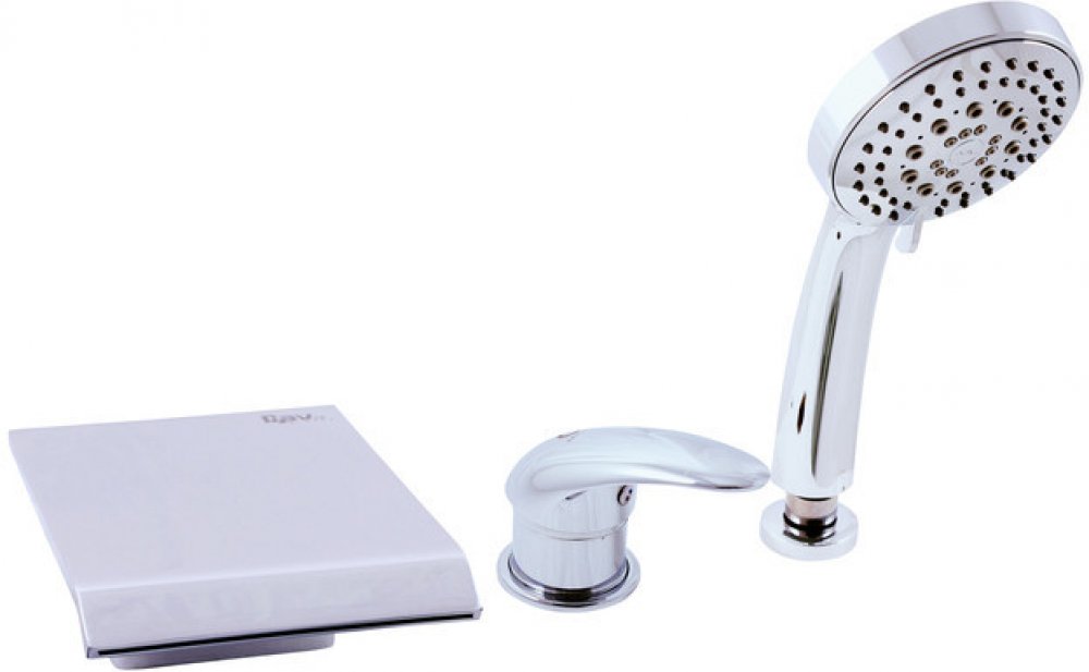 Vodovodní baterie vanová stojánková tříotvorová s přepínačem v mixu, samonavíjecí sprchou a 2m hadicí.