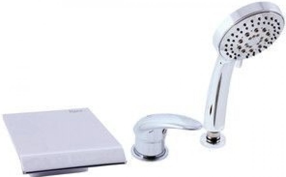 Vodovodní baterie vanová stojánková tříotvorová s přepínačem v mixu, samonavíjecí sprchou a 2m hadicí.