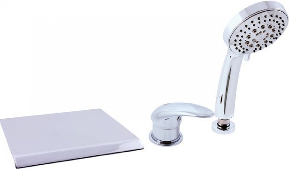 Vodovodní baterie vanová stojánková tříotvorová s přepínačem v mixu, samonavíjecí sprchou a 2m hadicí.