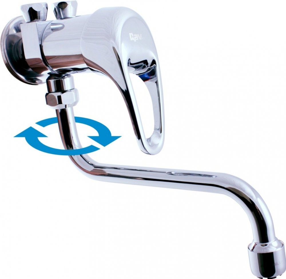 Vodovodní baterie páková umyvadlová/dřezová ze stěny, s otočným kulatým ramínkem 160 mm pro nízkotlaké ohřívače.