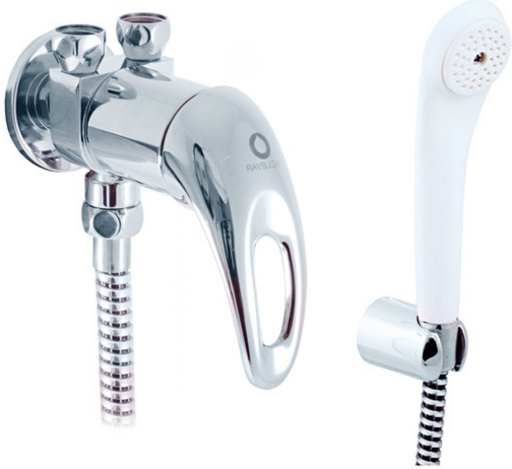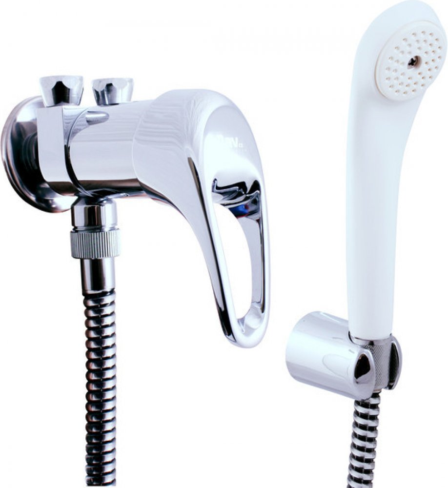 Vodovodní baterie páková sprchová ze zdi, s růžicí, hadicí a pevným držákem pro nízkotlaké ohřívače.