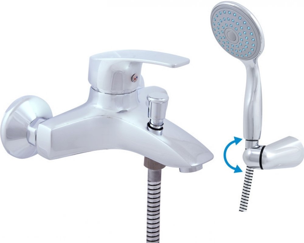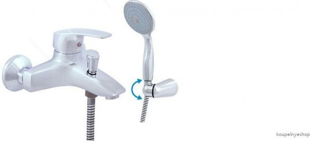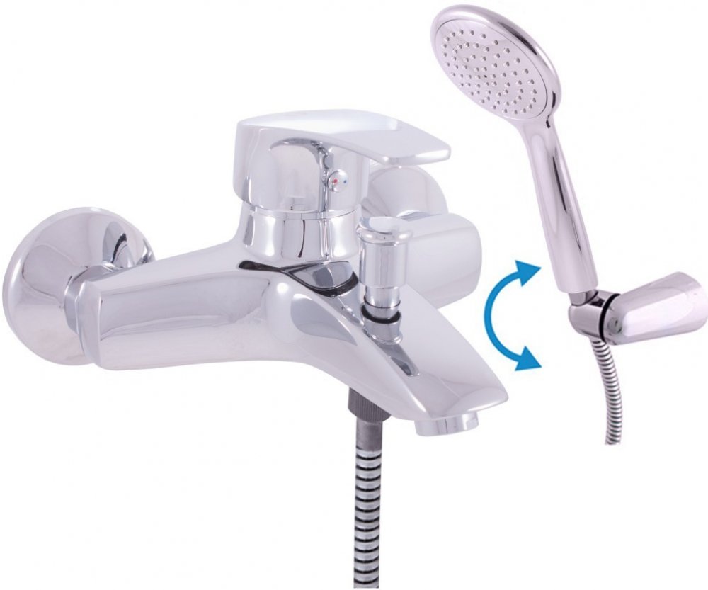 Vodovodní baterie vanová nástěnná se sprchou a otočným držákem.