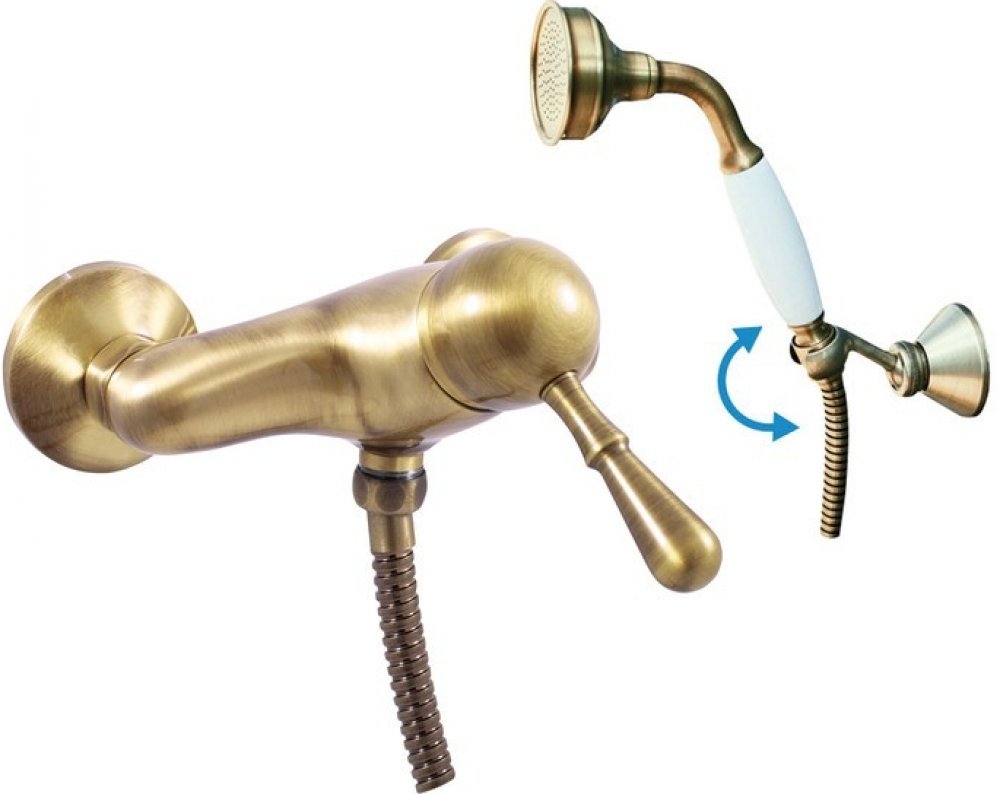 Vodovodní baterie sprchová nástěnná se sprchou a otočným držákem.