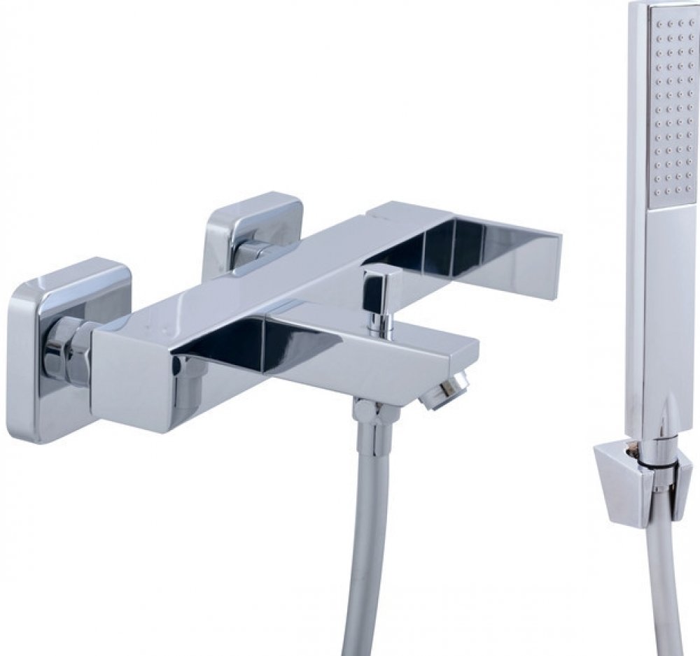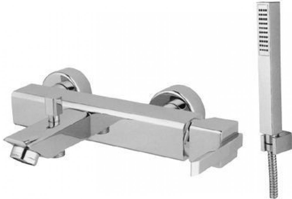 Vodovodní baterie vanová nástěnná se sprchou a pevným držákem.