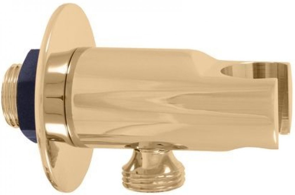 Držák sprchové růžice s vývodem na připojení hadice, kovový/zlato Kovový držák sprchy s vývodem pro hadici pevný povrchová úprava zlato Tyto držáky jsou ideální v kombinaci s podomítkovými bateriemi, když nechcete instalovat mezikus na hadici, jelikož hadici napojíte přímo na držák. Vhodný ke všem sprchovým a vanovým podomítkovým bateriím a ke sprchovým růžicím a hadicím Slezák-RAV.