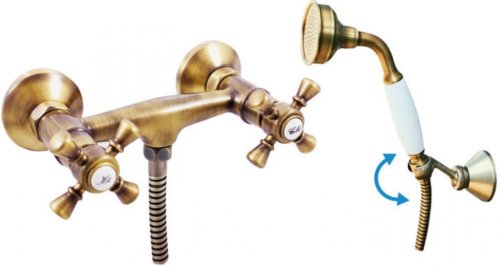 Vodovodní baterie sprchová nástěnná se sprchou a otočným držákem.