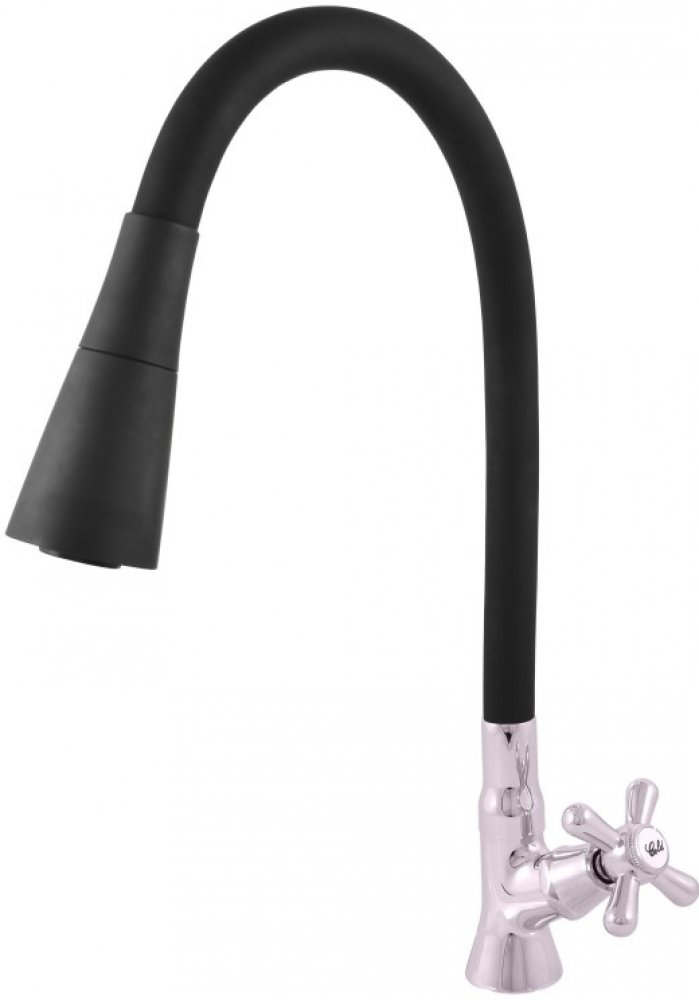 Vodovodní baterie umyvadlová stojánková na jednu vodu s flexibilním otočným ramínkem se sprchou.
