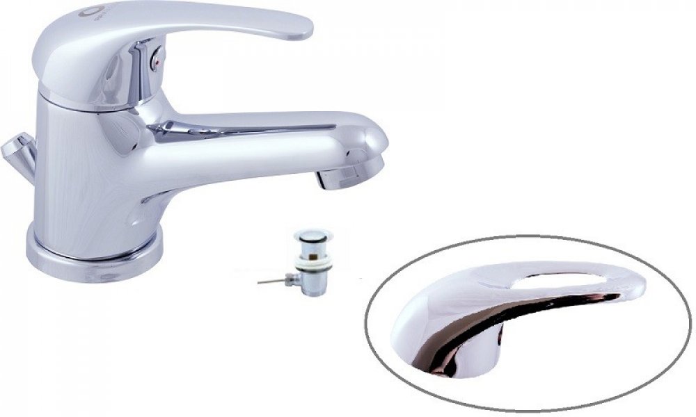 Vodovodní baterie umyvadlová stojánková s otvíráním odpadu.