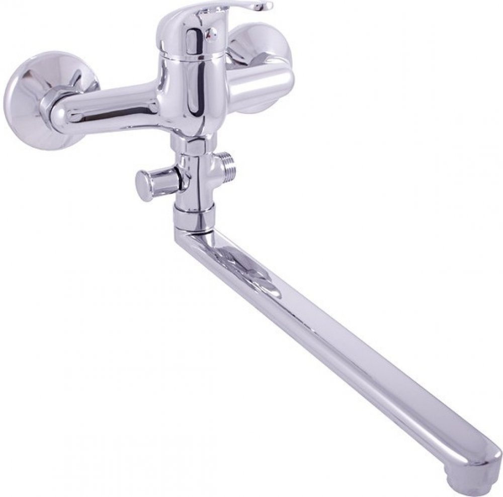 Vodovodní baterie vanová nástěnná s plochým otočným ramínkem.