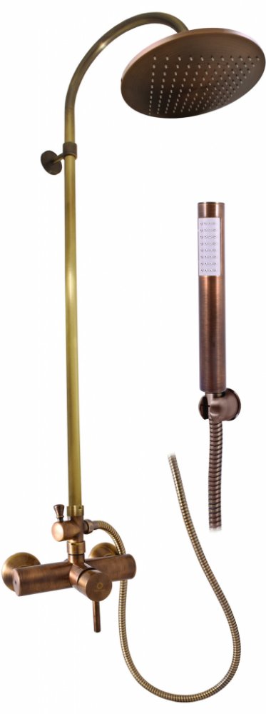 Vodovodní baterie sprchová nástěnná páková, s hlavovou a ruční sprchou. Baterie je vybavena keramickou kartuší o průměru 35 mm. Kovová antivápenná ruční sprcha jednopolohová. Kovový držák ruční sprchy. Kovová antivápenná hlavová sprcha. Sprchová kovová hadice dvouzámková o délce 150 cm. Sprchová tyč s keramickým přepínačem.
