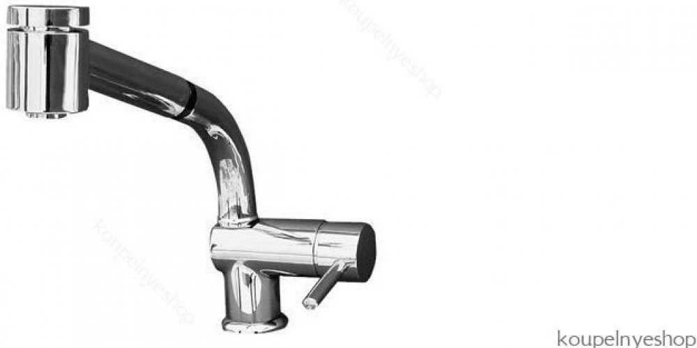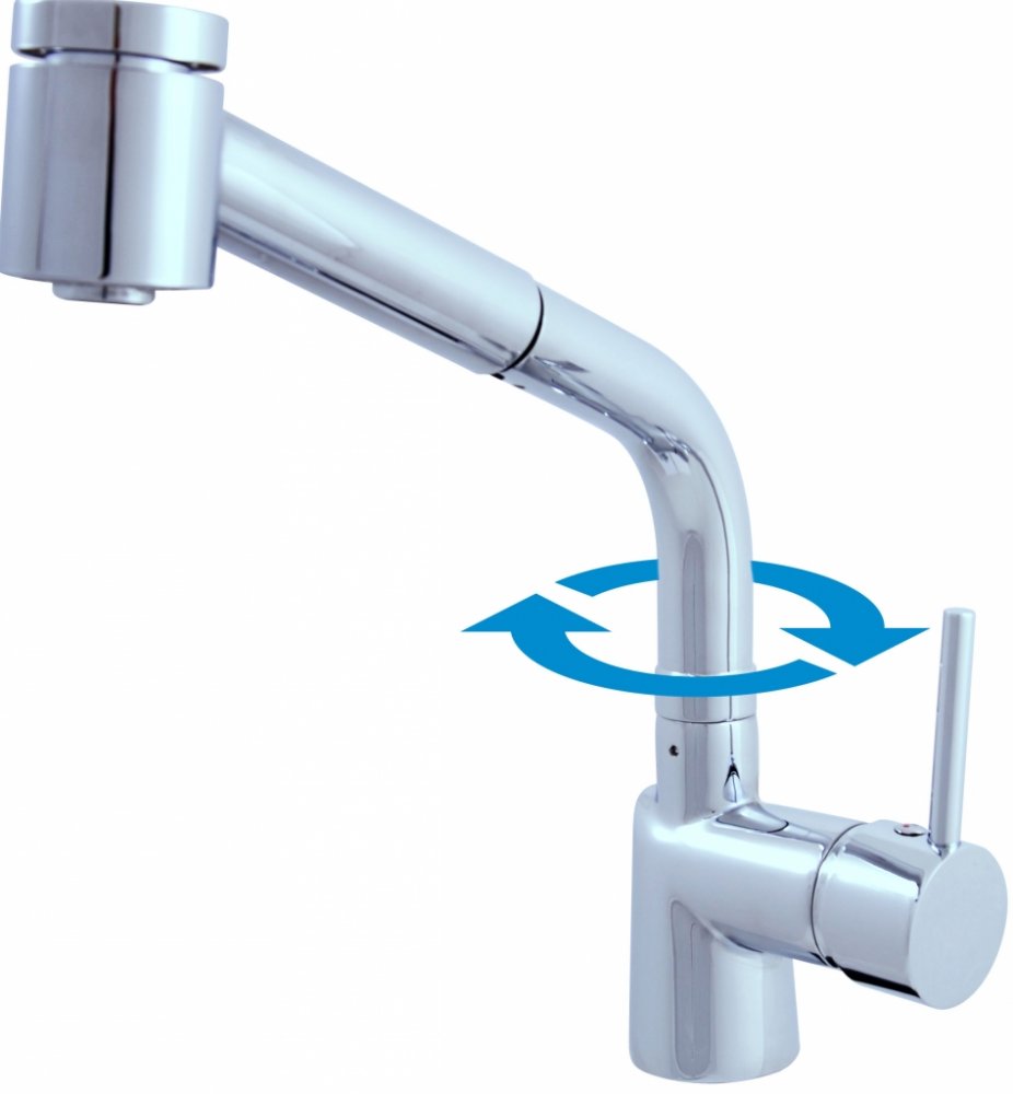 Vodovodní baterie dřezová stojánková s otočným ústím a vytahovací sprchou.
