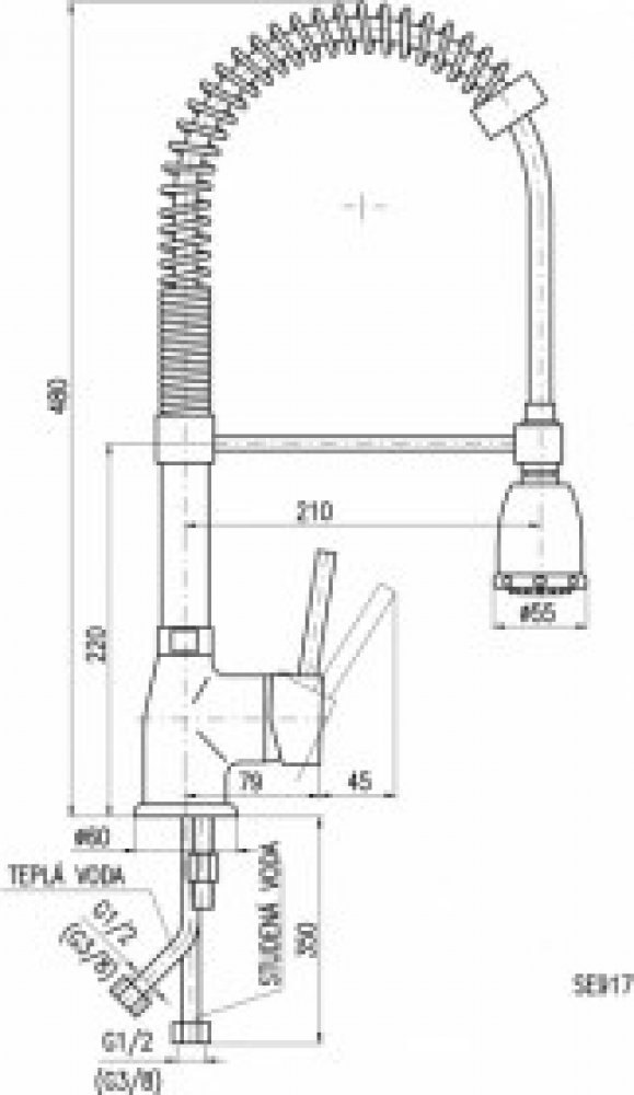 Vodovodní baterie dřezová stojánková se sprchou na pružině. tato baterie je vybavena keramickou kartuší o průměru 35 mm KA3502 součástí balení této baterie je: plastová antivápenná sprcha PS0052, u které máte 2 možnosti proudu, klasický proud a sprchu Typ připojení flexi hadic: "0" - připojení flexi hadic 3/8" (SE917.0) "5" - připojení flexi hadic 1/2" (SE917.5) Tuto baterii lze kombinovat s umyvadlovými, vanovými a sprchovými bateriemi ze série SEINA SLEZAK - RAV. Záruka: na těsnost odlitku (tělo baterie) - 10 let na kartuši a povrchovou úpravu - 6 let na ostatní díly dle Občanského zákoníku Technický výkres