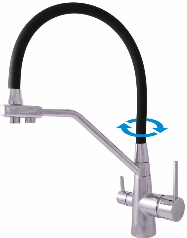Vodovodní baterie dřezová stojánková s otočným flexibilním ramínkem - pro dvě vody - pitnou a užitkovou.
