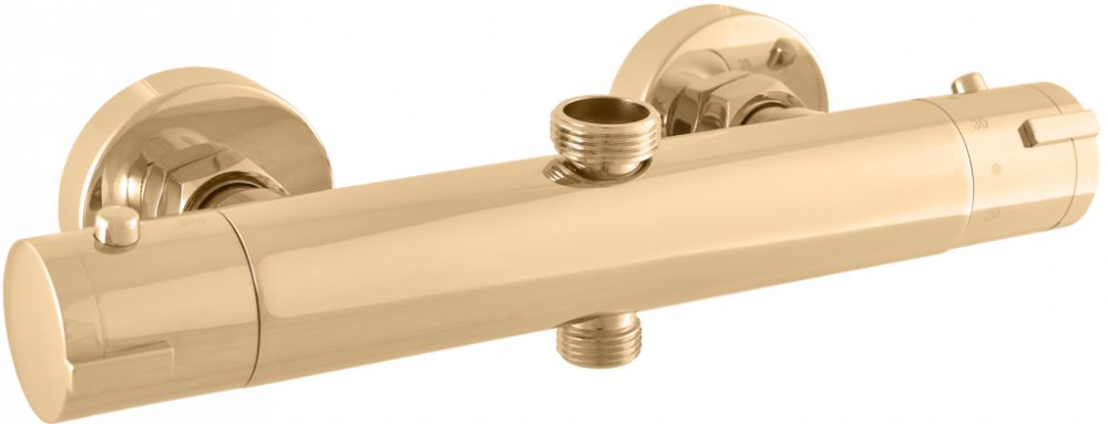 Vodovodní baterie sprchová nástěnná termostatická. tato baterie je vybavena termostatickou kartuší KA4015 a keramickým přepínačem KA2506. připojení na sprchovou tyč 3/4" vývod na sprchovou hadici 1/2" Povrchová úprava PVD Baterie sprchová termostatická se vyrábí pouze v rozteči 150 mm. Tuto baterii lze kombinovat s bateriemi ze série TERMOSTATICKÉ baterie SLEZÁK - RAV. Záruka: na těsnost odlitku (tělo baterie) - 10 let na kartuši - 2 roky na povrchovou úpravu - 6 let na ostatní díly dle Občanského zákoníku