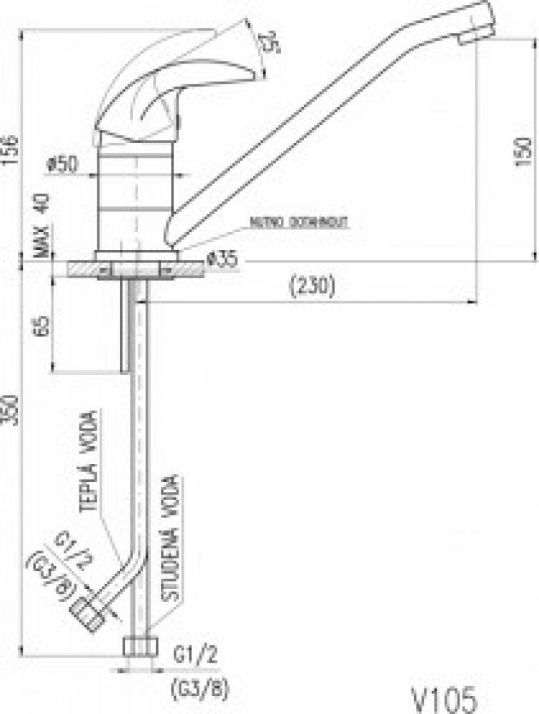 Vodovodní baterie dřezová stojánková s otočným ústím 225 mm. Provedení: "0" - připojení flexi hadic 3/8" (V105.0) "5" - připojení flexi hadic 1/2" (V105.5) Záruka: na těsnost odlitku (tělo baterie) - 10 let na kartuši a povrchovou úpravu - 6 let na ostatní díly dle Občanského zákoníku
