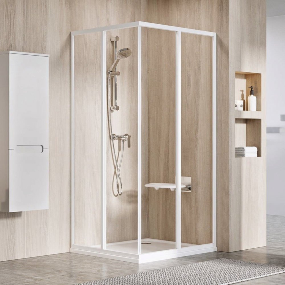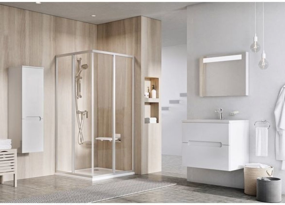 white Posuvné dveře šetří místo Sprchový kout s posuvnými dveřmi je vhodný i do menších koupelen. Nezabírá centimetr navíc, ani když ho otevřete. Absolutně spolehlivý Patentovaný systém AntiBlock zaručuje bezporuchový a tichý chod sprchových dveří. Zabraňuje zadrhávání a křížení i při nešetrném zacházení. Testovali jsme ho na 1 milion otevření a zavření, a proto na něj poskytujeme záruku 10 let. V...