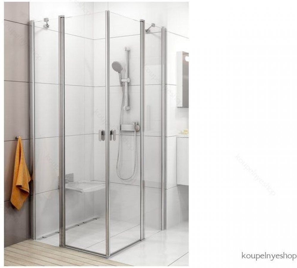 Zkombinujte dvoje sprchové dveře a získáte čtvercový či obdélníkový sprchový kout s půdorysem, jaký zrovna potřebujete a se vstupem širokým až 125 cm. Ke sprchovým dveřím můžete použít i pevnou stěnu.