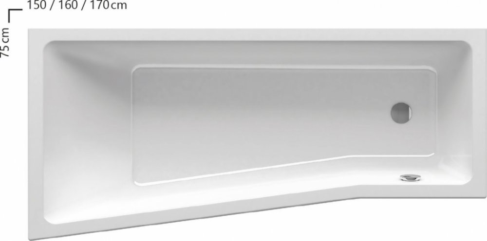 Asymetrická vana Ravak BeHappy II v pravém provedení je vyrobená z litého akrylátu a vyztužená sklolaminá...