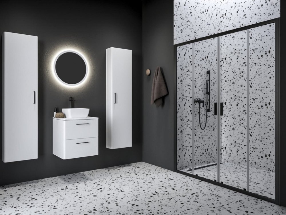 Sprchové dveře bez vaničky a barvou profilů v černé barvě, výplň je z čirého skla bez dekoru. Produkt je opatřen technologií RAVAK AntiCalc® dodává sklu hydrofobní účinky, to znamená, že povrch skla se stane vodoodpudivým. Posuvný systém otevírání. Určení - levá i pravá orientace.