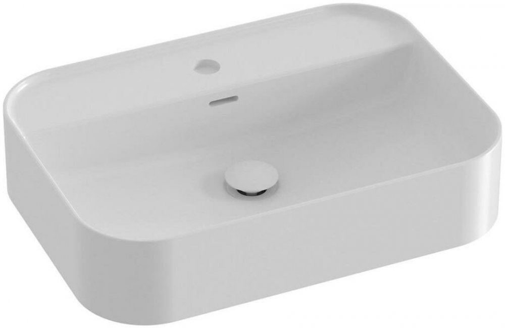 Tenkostěnné keramické umyvadlo Ceramic Slim Shelf R k instalaci na desku nebo skříňku, s přepadem. Bílé provedení.