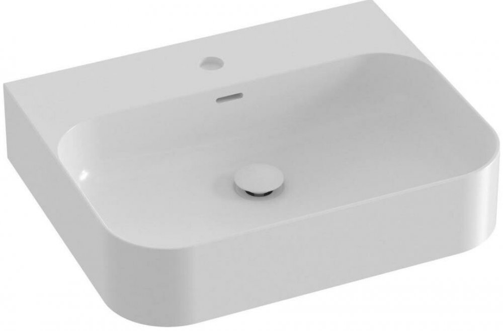 Tenkostěnné keramické umyvadlo Ceramic Slim Wall R k instalaci na desku nebo skříňku, s přepadem. Bílé provedení.