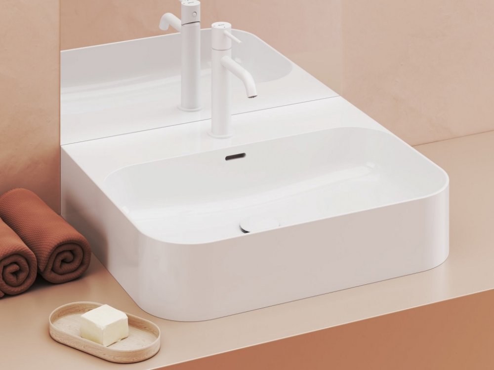Modely umyvadla Ceramic Slim Shelf mají otvor pro instalaci baterie přímo do umyvadla. Tak vznikla odkládací plocha v prostoru baterie, kde bývá mokro. Odložte si sem mýdlo a další doplňky, ať je máte hned po ruce.