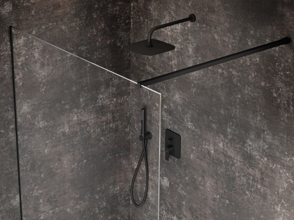 Podomítková baterie Flat black s přepínačem je vhodná pro sprchové kouty s pevnou a ruční sprchou nebo k vanám s napouštěním přepadem s možností sprchování. Průtok vody se ovládá pouhým zatlačením přepínače směrem ke zdi. Plynulé ovládání páky baterie poskytuje dokonalou regulaci proudu i teploty vody. Baterie je připravena pro použití instalačního tělesa R-Box Vari, které významně usnadňuje práci a zlepšuje výsledek celého díla. Matné černé baterie nachází uplatnění v široké škále stylů koupelen.