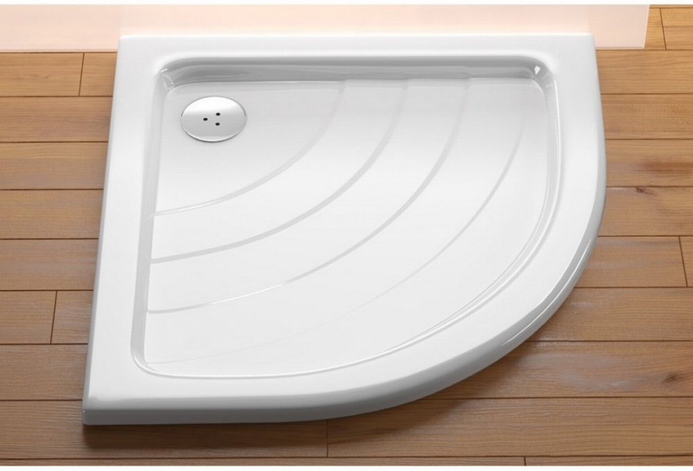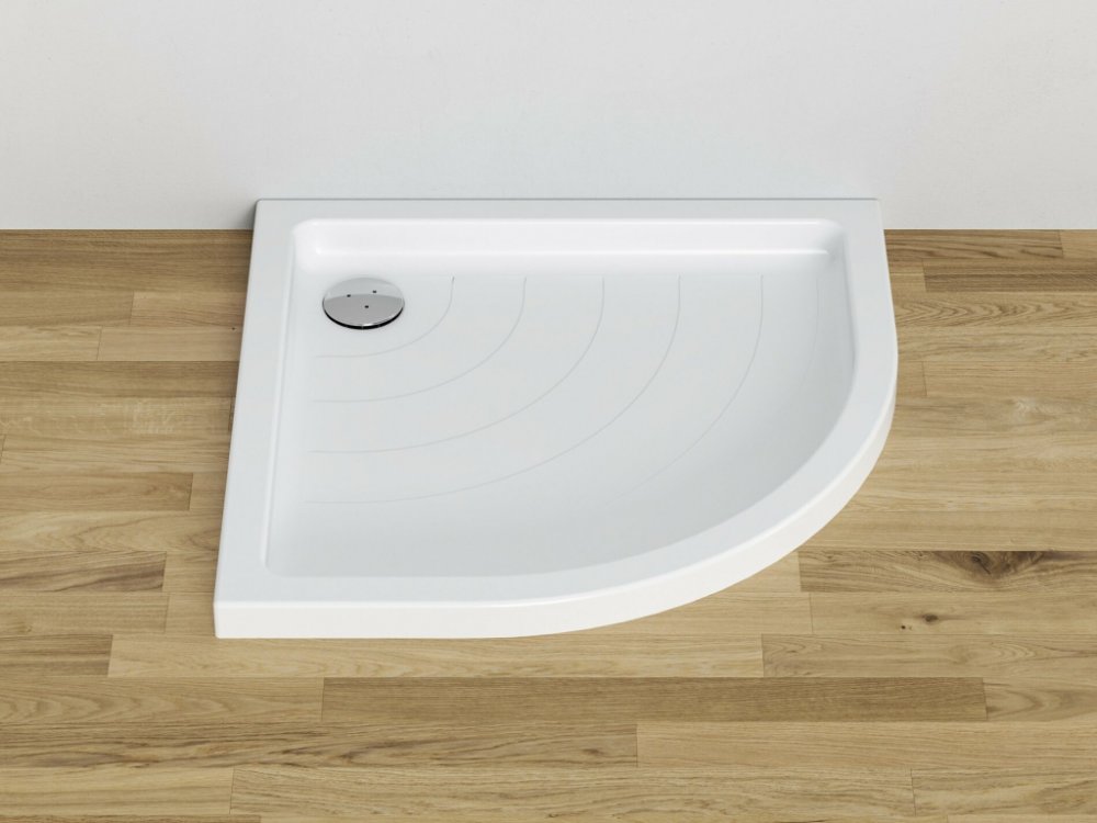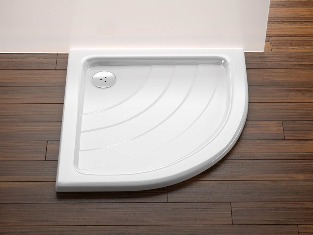 Čtvrtkruhová samonosná sprchová vanička Ronda PU. Panel a vanička tvoří nedělitelný celek. Vyrobena z akrylátu v bílé barvě a s ochrannou vrstvou AntiBac®.