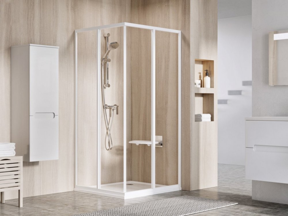 Sprchový kout rohový posuvný čtyřdílný v rozměrech 75, 80, 90, 100 cm. Provedení rámu: bílá/satin/černá, výplň z umělé hmoty: pearl, výplň z bezpečnostního skla: transparent/grape, k vytvoření celého koutu jsou zapotřebí dva kusy posuvných dveří SRV2-S, výška výrobku 1950 mm "rozměry: 75, 80, 90, 100 cmbarevné provedení: rám - bílý, Satin, černývýplň z bezpečnostního skla: 3 mm: Transparent, Grapevýplň z plastu: Pearlvýška výrobku: 195 cmzáruka: 5 letK vytvoření celého koutu jsou zapotřebí dva kusy posuvných dveří SRV2-S. Kombinací různých rozměrů obou dílů získáte čtvercovou nebo obdélníkovou variantu koutu. (např. 75 x 90 cm, 90 x 90 cm, 80 x 100 cm atd.) Výrobek dodáváme ve smontovaném stavu, stačí přišroubovat ke zdi a utěsnit. Montáž výrobku zvládne jeden člověk za pouhou hodinu. Montuje se do obloženého rohu koupelny na vaničky RAVAK Aneta, Angela, Perseus, Perseus Pro, Perseus Pro Flat, Perseus Pro Chrome, Perseus Pro 10°, Gigant Pro, Gigant Pro Flat, Gigant Pro Chrome Gigant Pro 10° nebo přímo na podlahu se zabudovaným odtokovým žlabem či podlahovou vpustí. Sprchový kout je možno přizpůsobit případným nepřesnostem stavebního otvoru pomocí nastavovacích profilů NPS.Ostatní rozměry a varianty sprchového koutu řešíme na míru.Před montáží výrobku věnujte pozornost technickým dokumentům v záložce ""Data ke stažení"", číslice uvedená v názvu konkrétního výrobku, neudává jeho přesný rozměr."