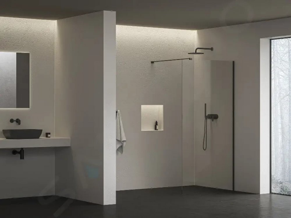 Sprchový kout Walk-In Air Wall s otevřeným vstupem z jedné strany. V černém provedení a s výplní z čirého skla s ochrannou vrstvou RAVAK AntiCalc. Technický popis: šířka skleněné pevné stěny Walk-In Air Wall: 90 cm výška skleněné pevné stěny: 200 cm šířka vstupu: až 120 cm (délku vzpěry je možné libovolně zkrátit na požadovanou šířku vstupu) výplň z bezpečnostního skla: "6 mm provedení kovových detailů: černá Sprchový kout Walk-In Air Wall tvoří tvrzené bezpečnostní sklo o tloušťce 6 mm. Stabilitu výrobku zajišťuje kovová vzpěra s délkou 120 cm, kterou je možné libovolně zkrátit podle požadované šířky vstupu. Sprchový kout Walk-In Air Wall s matnou černou povrchovou úpravou kovových částí. Doporučujeme instalovat do obloženého rohu koupelny přímo na podlahu se zabudovaným odtokovým žlabem či podlahovou vpustí. Sprchový kout je univerzální, při montáži si zvolíte pravou či levou orientaci vstupu. Prostorný a moderní – to jsou hlavní charakteristiky Walk-in koutu. Tento typ sprchového koutu nabízí koupelně minimalistický a vkusný design s otevřeným prostorem. Je ideální volbou pro ty, kteří chtějí do své koupelny vnést pocit elegance a prostornosti. Walk-in kouty jsou oblíbené pro svou schopnost přizpůsobit se různým koupelnovým stylům a poskytnout maximální volnost pohybu. Koupelnové vybavení od Richter + Frenzel je synonymem elegance a vkusu. Každý produkt je pečlivě vybrán tak, aby splňoval vysoké nároky na design a funkčnost. Společnost klade důraz na detaily a nabízí jedinečné řešení pro každý interiér.