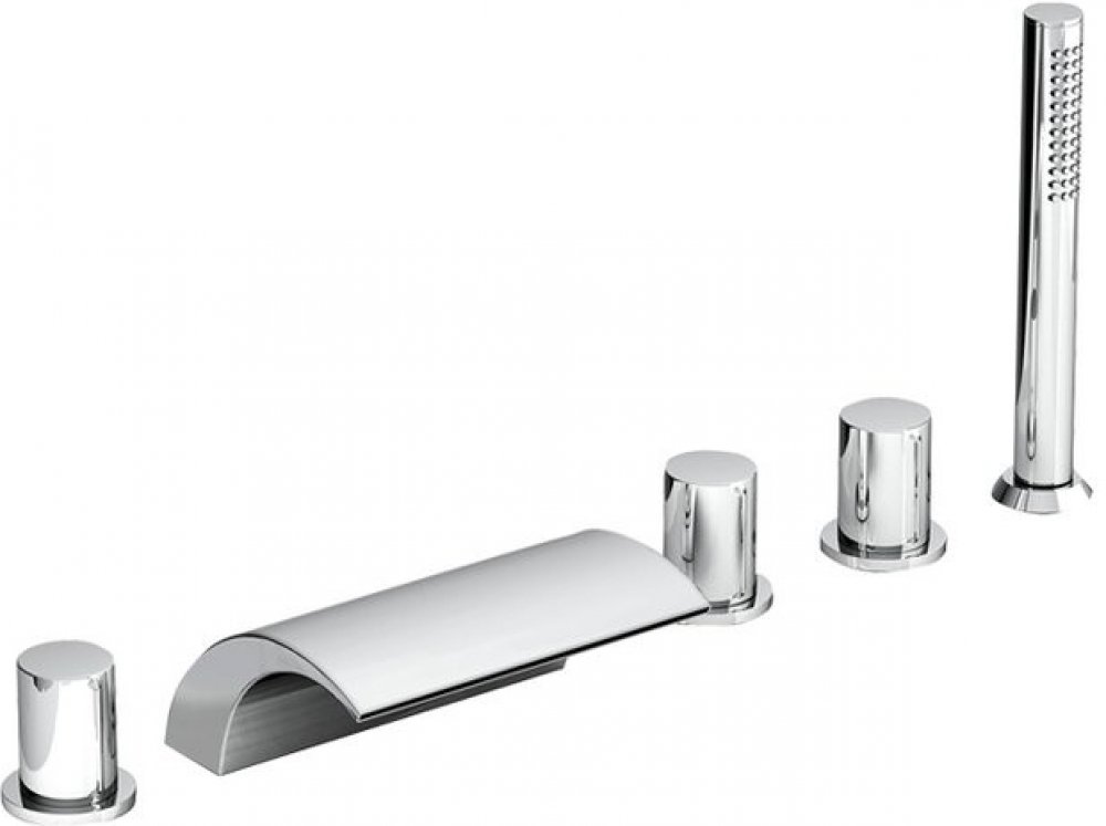 Vanová čtyřotvorová baterie na okraj vany, se sprchovým setem. V provedení lesklý chrom.