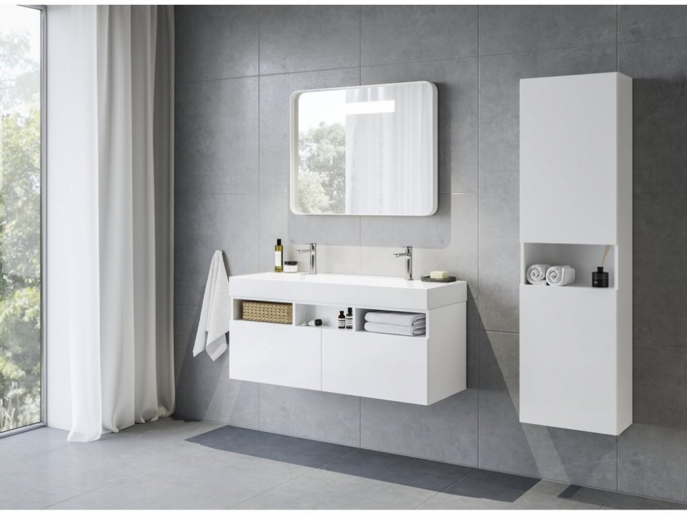 Koupelnový nábytek ošetřujeme speciální hloubkovou impregnací proti vlhkosti. Proto se hodí i do extrémně vlhkého prostředí v koupelně. Povrchová úprava skříněk je v bílé barvě s vysokým leskem. Nábytek je také odolný proti UV záření i poškrábání.