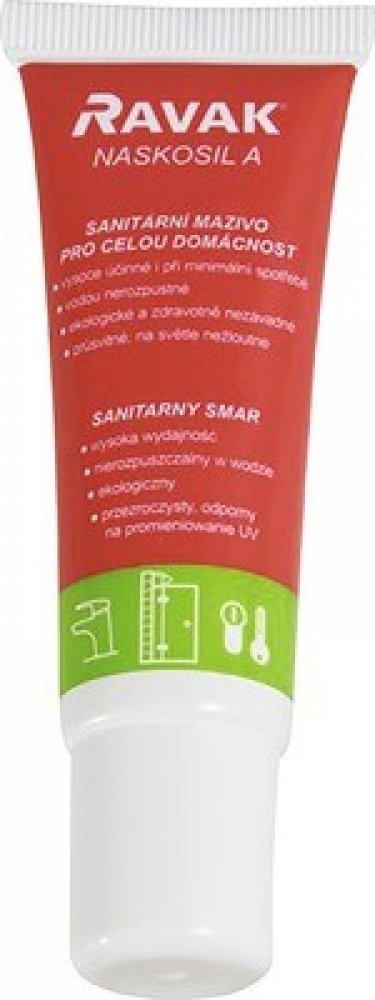 Profesionální odolné mazivo RAVAK je voděodolné a vysoce účinné i při nanesení minimálního množství. Používejte na pojezdy a panty sprchových koutů, dveří a zástěn, na kartuše a pohyblivé části vodovodních baterií, zámky a kliky u dveří.
