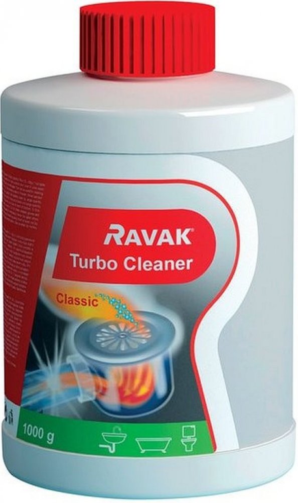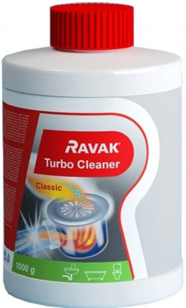 - použití: Do výlevky nasypte 30 – 90 g přípravku, zalijte 0,1 – 0,4 l horké vody (podle množství přípravku), nechte působit nejméně 30 minut a poté propláchněte studenou vodou. Upozornění: Vyvarujte se styku přípravku Ravak TurboCleaner s pokožkou!