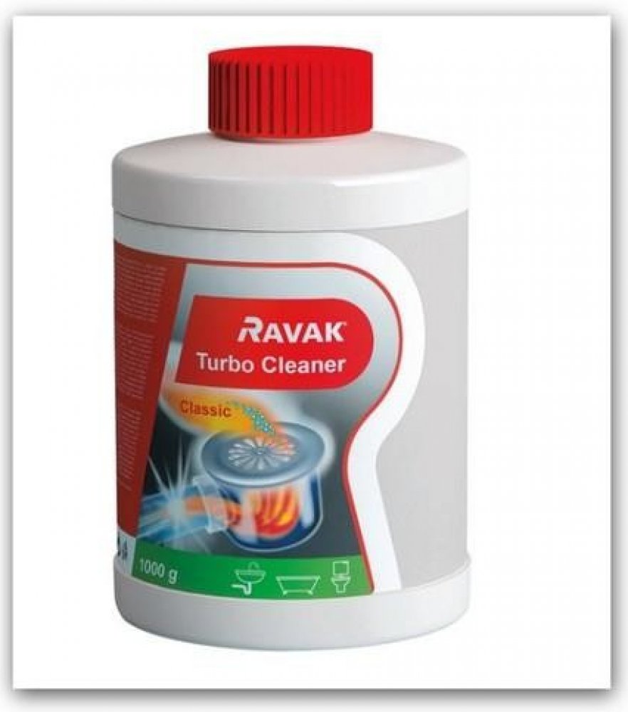 Čistící prostředek Ravak Turbo Cleaner k rozpuštění těch nejhrubších nečistot usazených v sifonech.