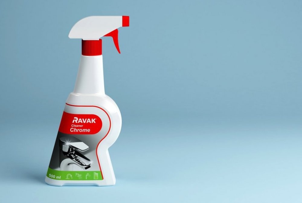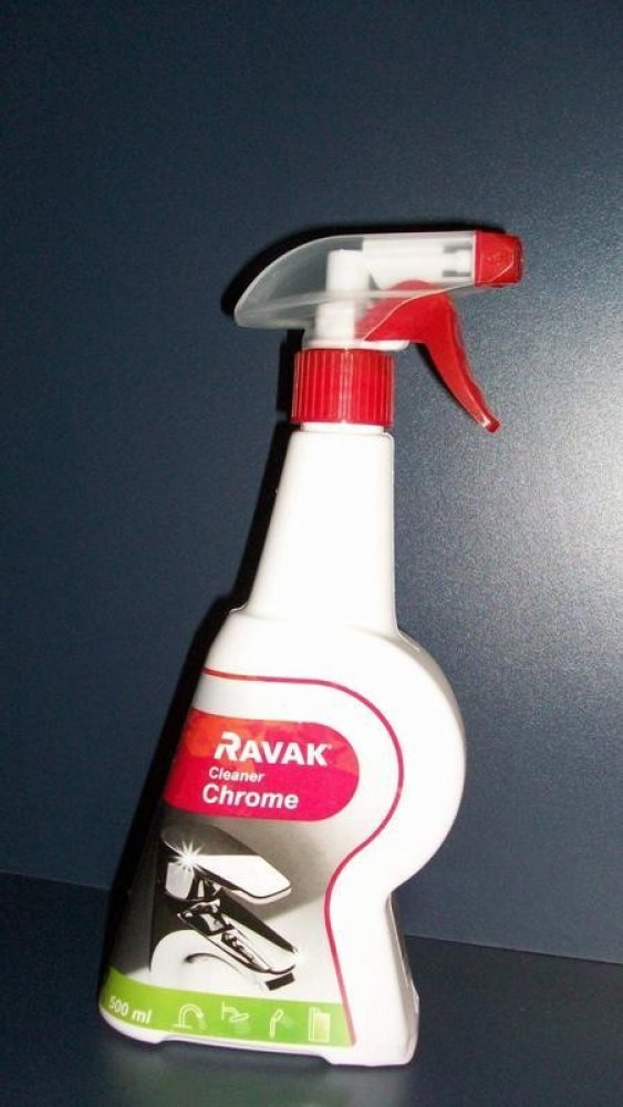 RAVAK Cleaner Chrome je speciální čistič k odstranění mastnoty a zbytků usazenin z chromovaných povrchů – vodovodních baterií, příslušenství vodovodních baterií a chromovaných povrchu sprchových koutů.