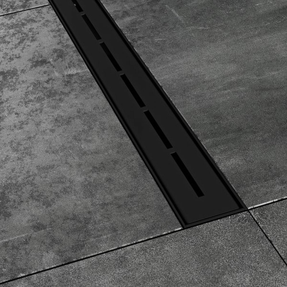Sprchový žlab Runway z kvalitní nerez oceli. K instalaci do prostoru. V černém matném provedení. Speciální úprava zamezuje ulpívání nečistot.