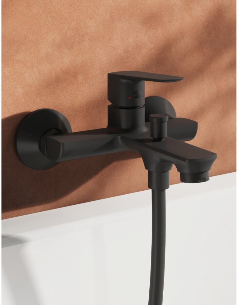 Baterie pro vanu LF 022.20BL, bez příslušenství barva černá materiál kov délka výtoku 179 mm nástěnná montáž rozteč 150 mm keramická kartuše 35 mm pákové ovládání s aretačním přepínačem vana/sprcha hladký chod páky SoftMove EasyClean - jednoduché odstranění vodního kamene připojení G 1/2" bez sprchového příslušenství