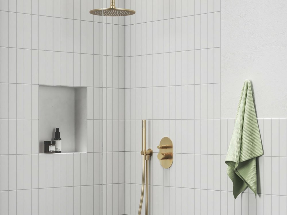Dvoucestná podomítková baterie Espirit, kompletní. Provedení broušené zlato.Technický popis:- hlavice: průměr: 35 mm, materiál: keramika- typ provedení: dvoucestná, s automatickým přepínačem - není určena pro R-box- provedení: GLB: Gold Brushed - broušené zlato- použití: - pro vany s přetokovým napouštěním a výstupem pro sprchovou hlavici - pro sprchové kouty s dešťovou sprchou a sprchovou hlavicí...
